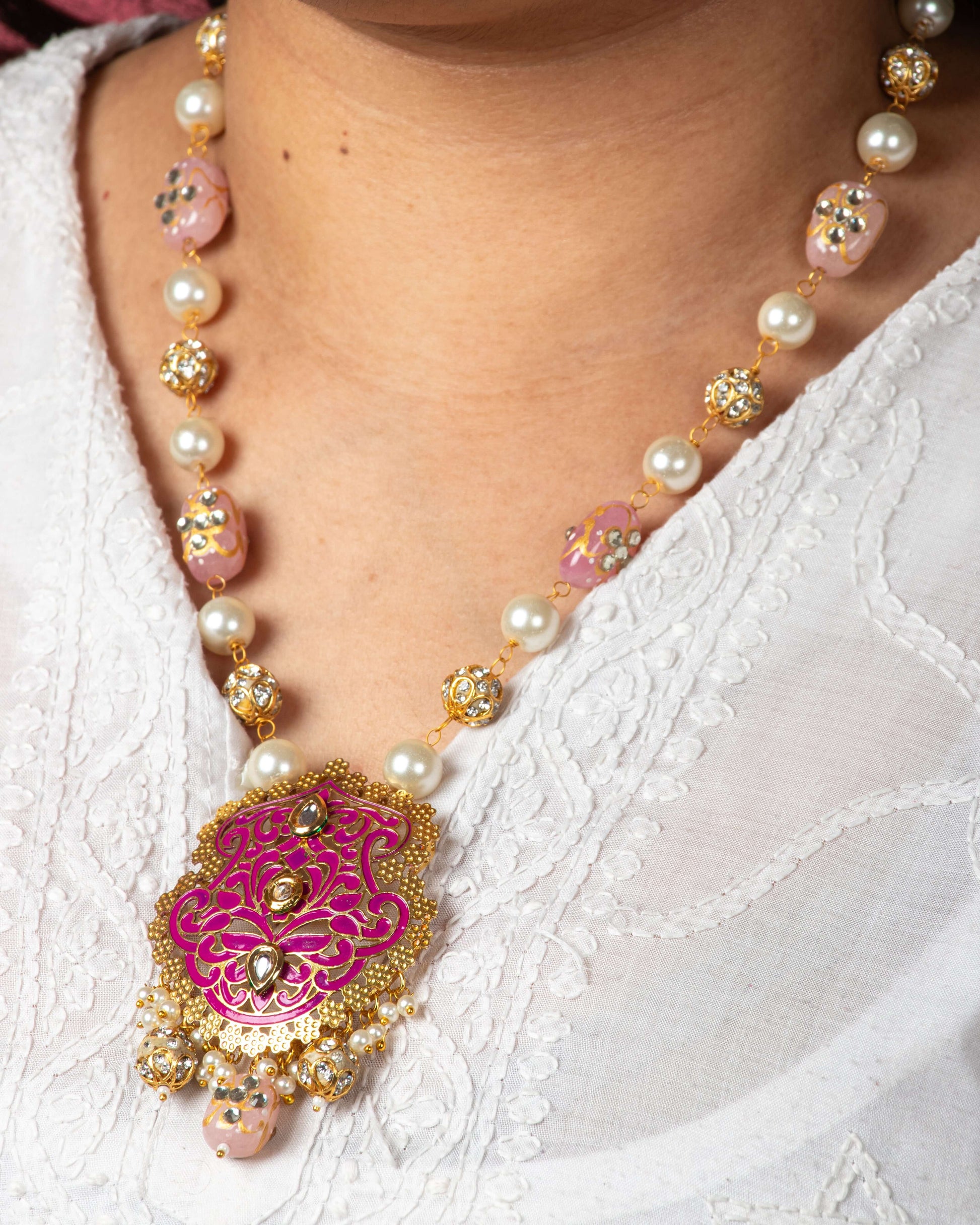 - Intricately Designed Pendant: The centerpiece of the Zaariya Stone Mala Necklace is its beautifully crafted filigree pendant, showcasing intricate patterns and detailing for an elegant look.