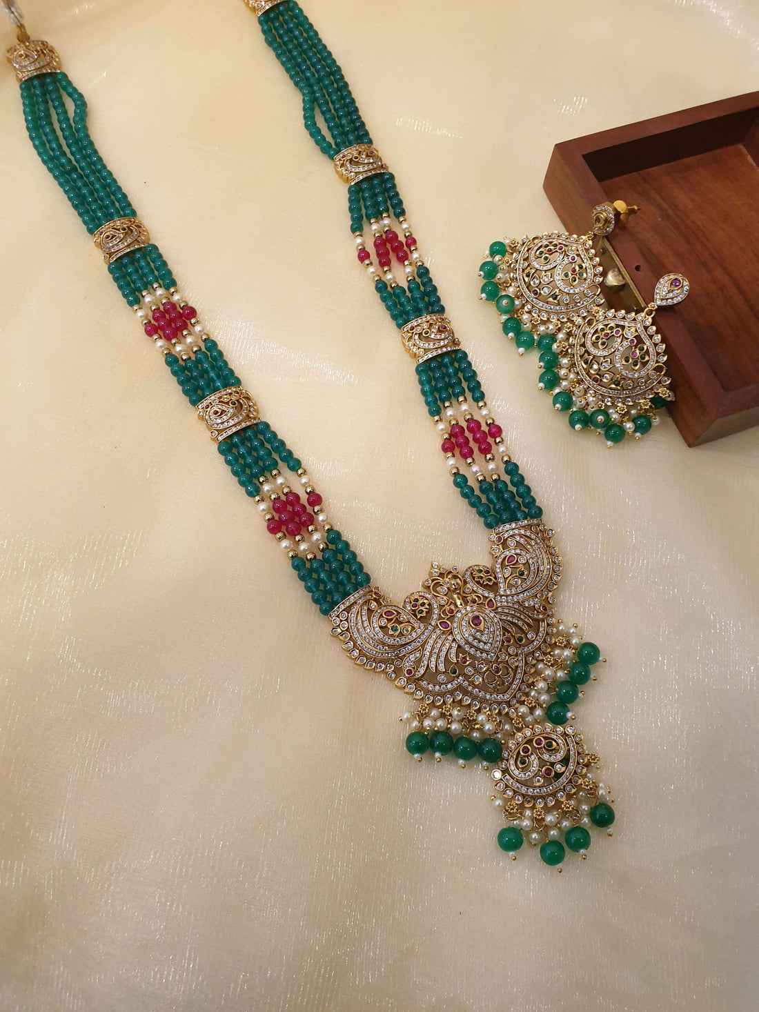 •Make a statement with our Emerald Green Long Raani Haar, a regal and vibrant adornment...