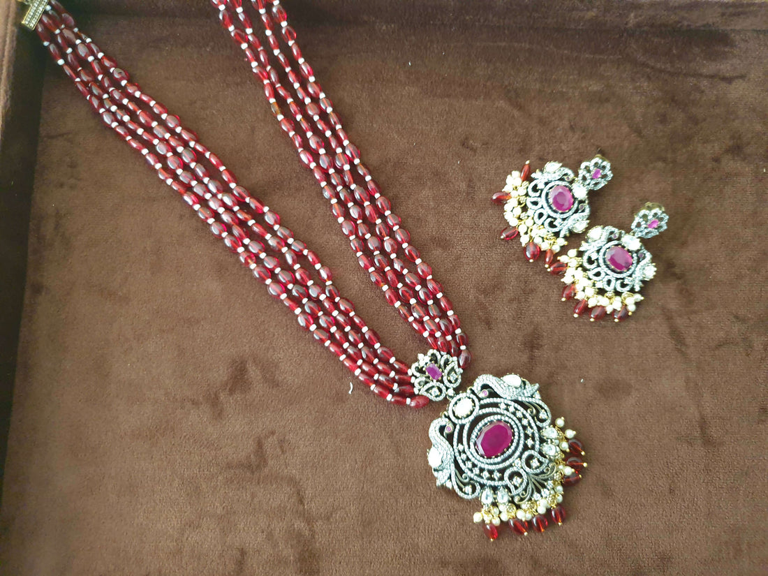 •Adorn yourself in timeless elegance with our Long Red Beaded Necklace featuring a Victorian pendant....
