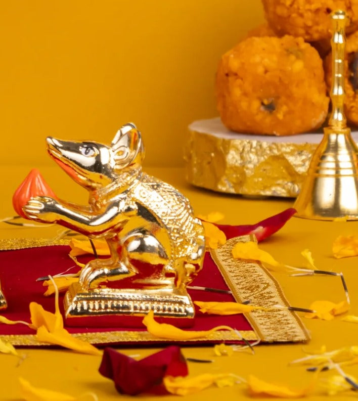 Gold Mushak Idol for Ganpati Pooja (2 inches)