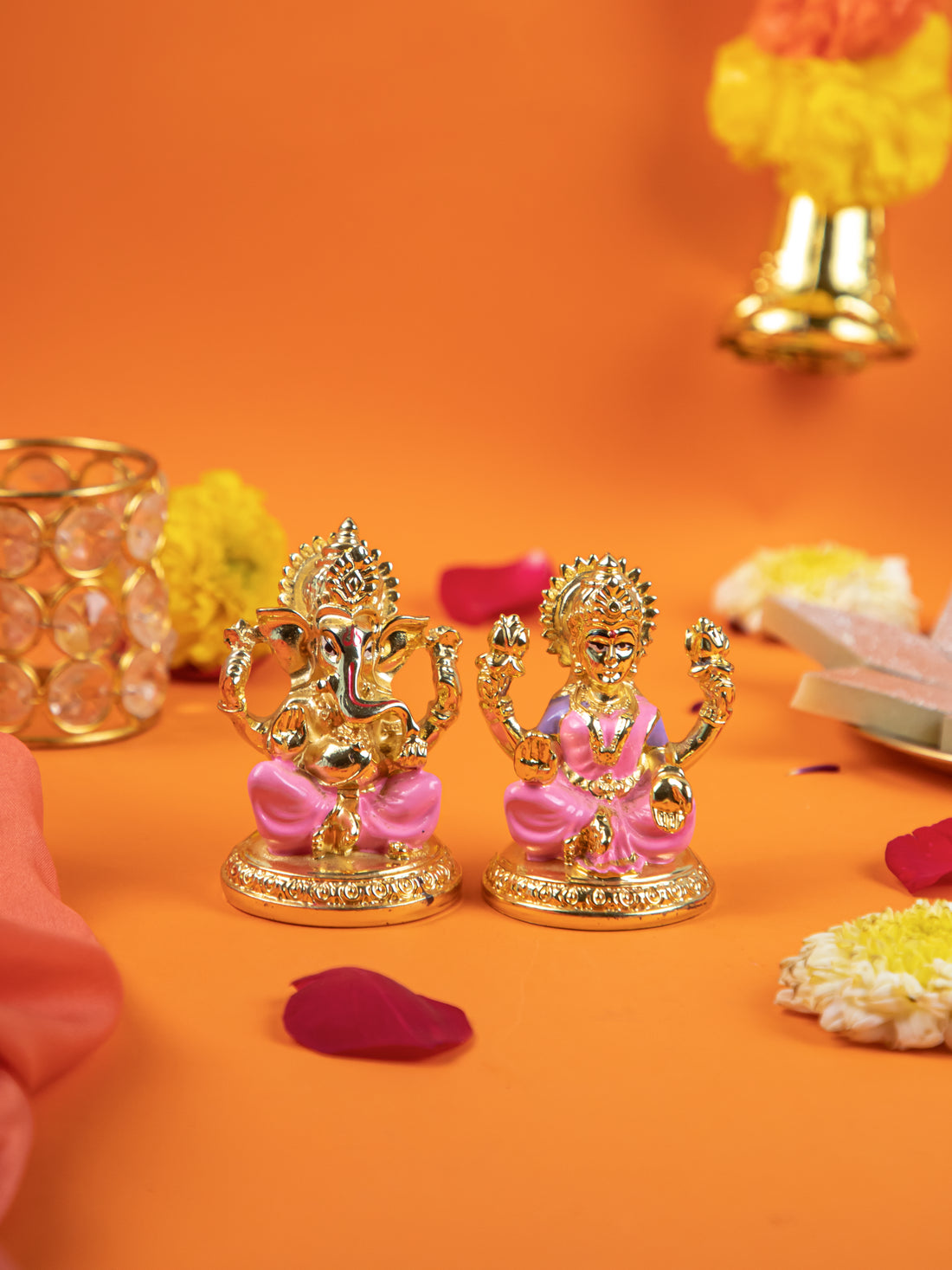 Gold Laxmi Ganesh Idol (3 inches) (Pink)