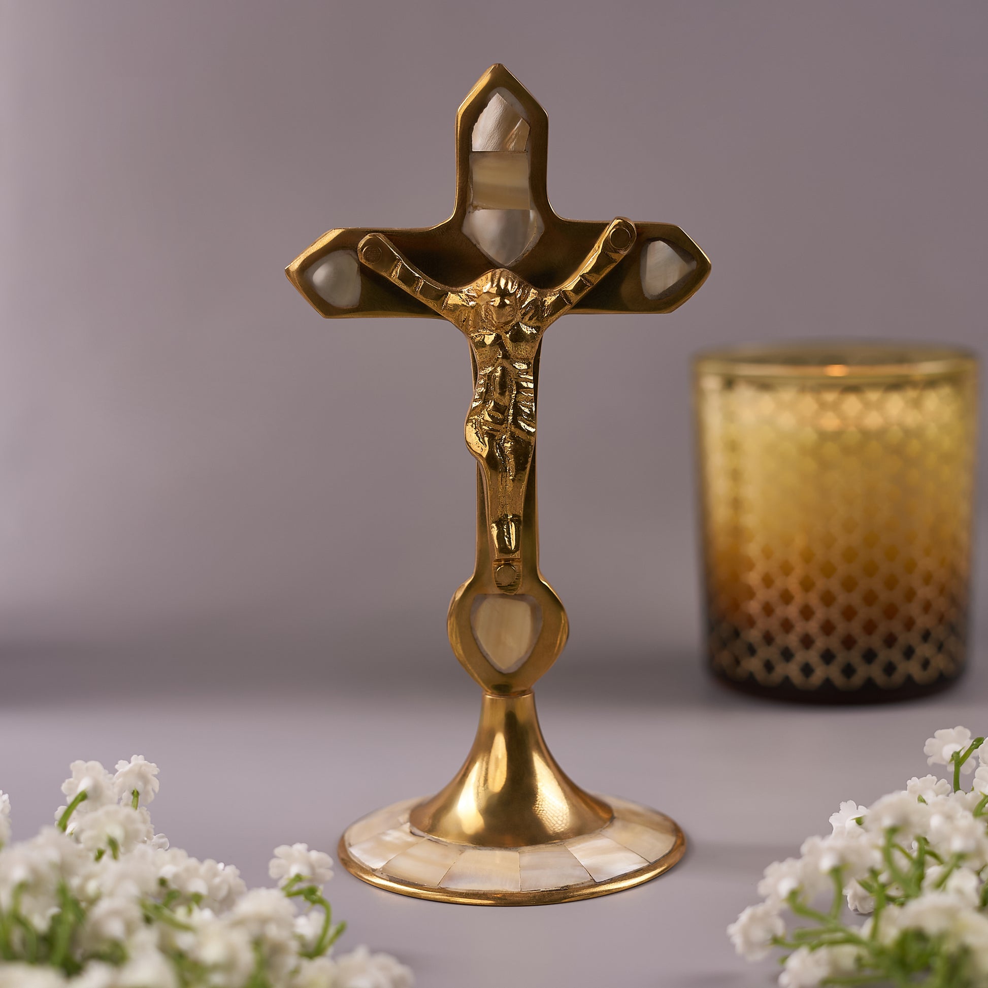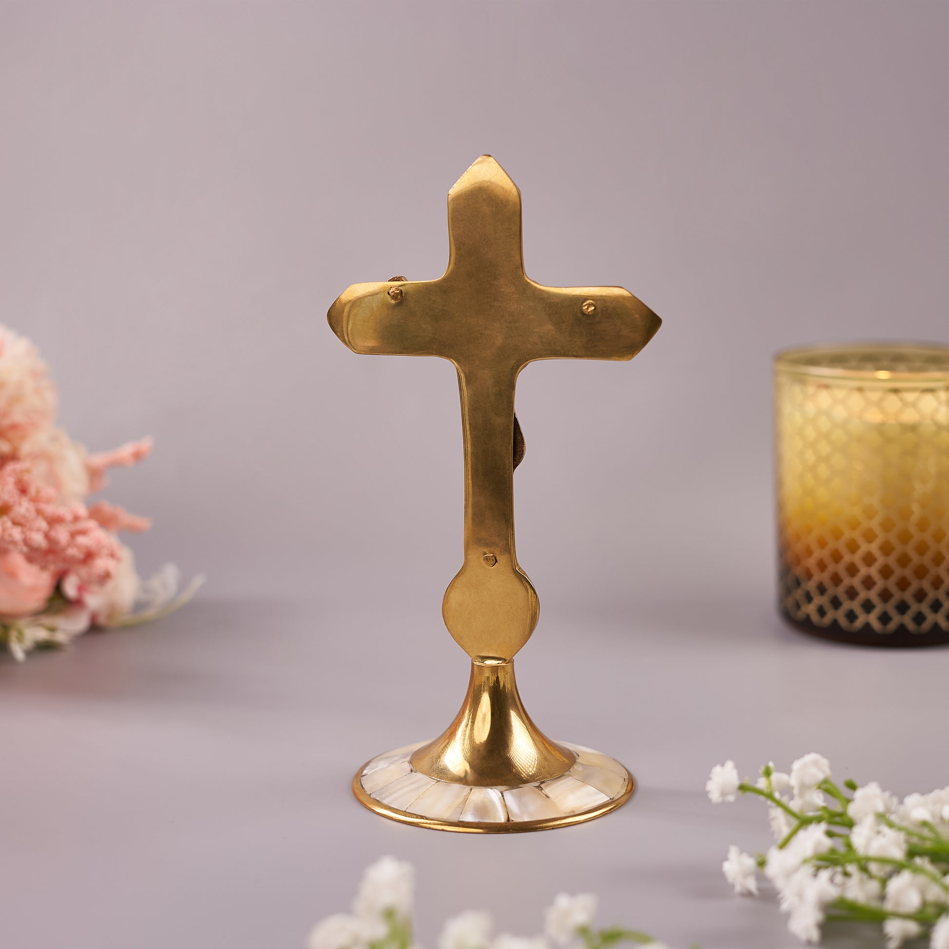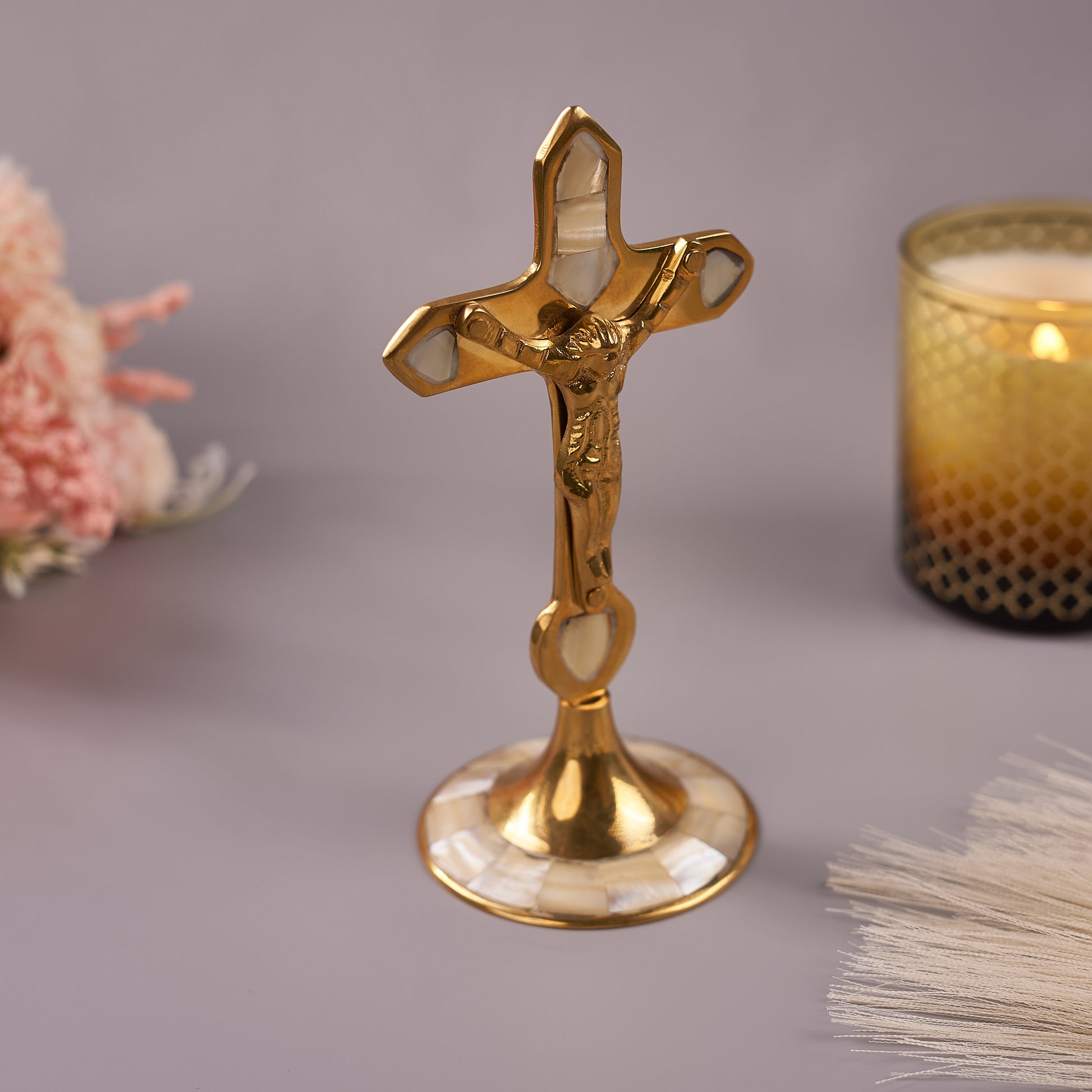 Mother-of-Pearl Brass Cross for Home Décor and Spirituality